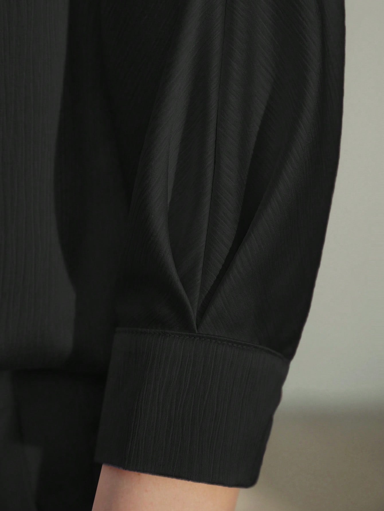 CM-TS446039 Women Casual Seoul Style Solid Keyhole Back Round Neck Half Sleeve Blouse - Black
