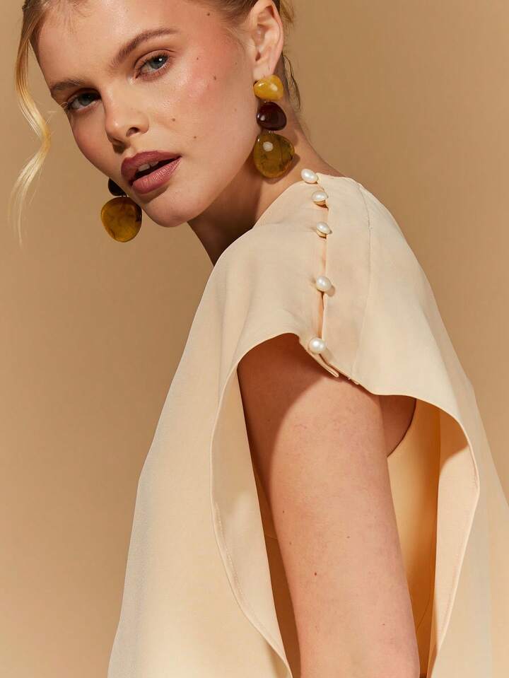 CM-TS652201 Women Elegant Seoul Style Asymmetric Shawl Collar Batwing Sleeve Poncho Top - Khaki